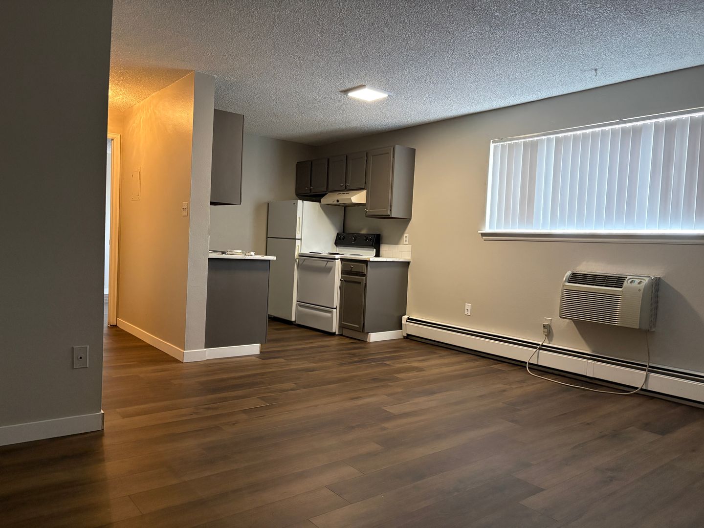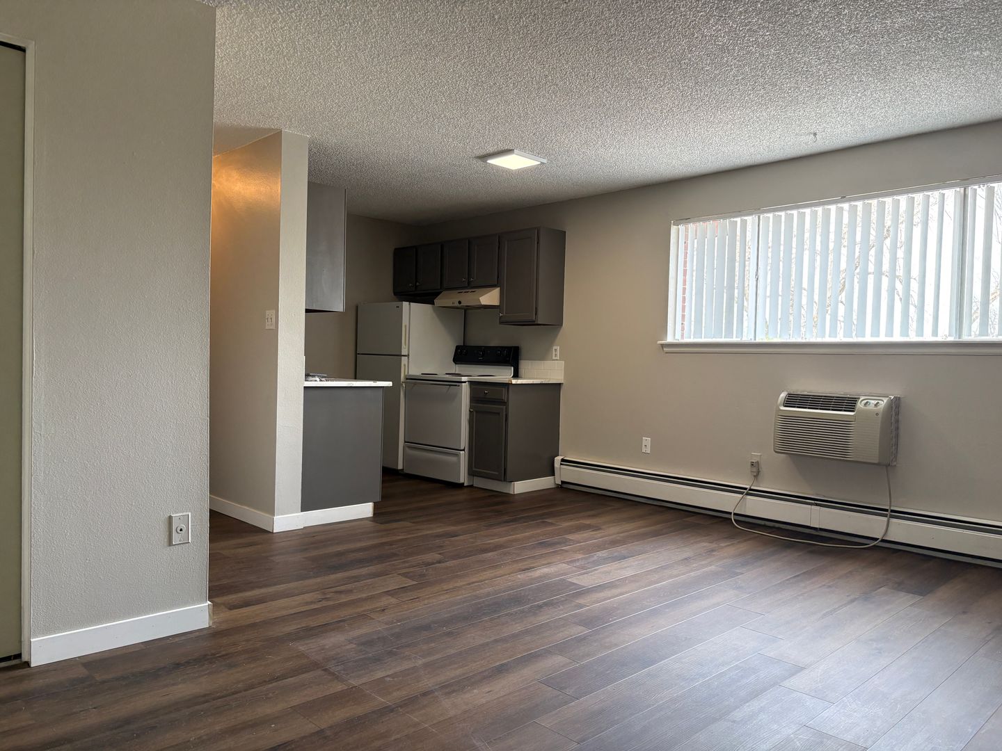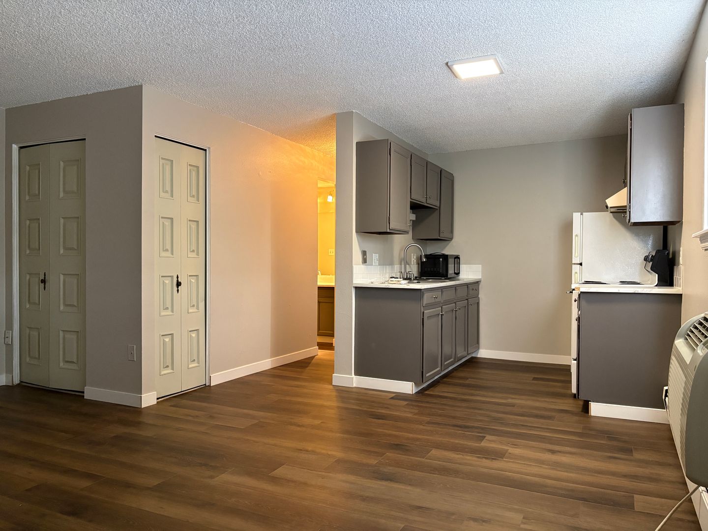 This second-floor one-bedroom apartment features updated LVP flooring throughout, offering a clean and modern feel. The layout is practical and comfortable, with a full bathroom, a wall A/C unit, and plenty of closet storage for easy organization. Rent is $1,115 per month, with an $85 utility fee bringing the total to $1,200, which includes water, heat, sewage, and trash. Electricity is in the tenant's name, and the security deposit is $1,000, or $700 for qualified applicants.
